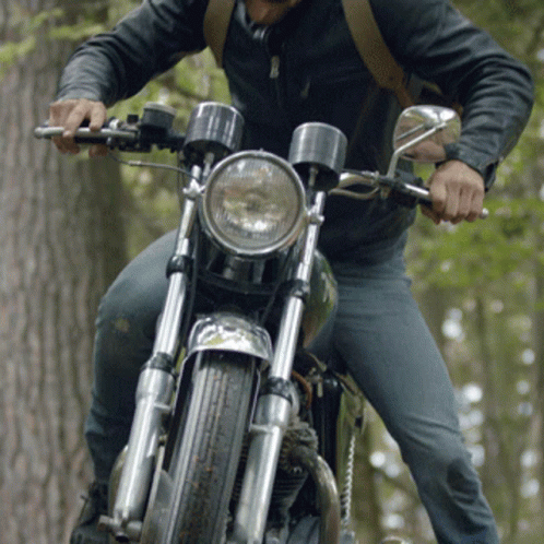 Dierks Bentley rides a motorcycle through a scenic wooded area, embodying the spirit of 'Ready To Go'.