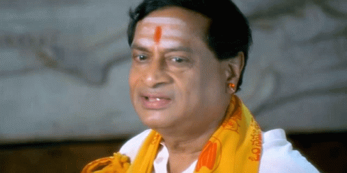 M.S. Narayana's face changes color from normal to green and back, wearing a scarf and tilak.
