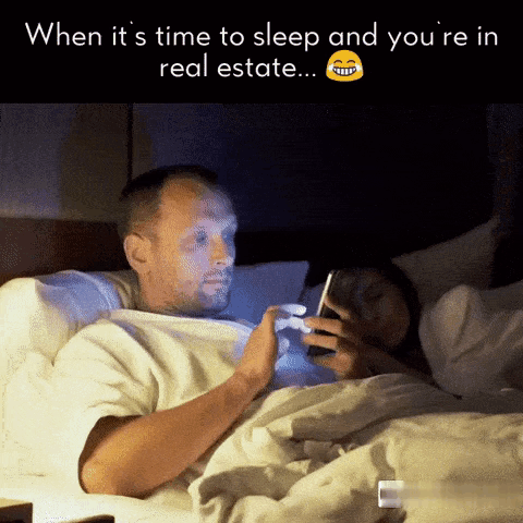 A real estate agent struggles to sleep, engrossed in his phone next to his partner, a common meme for the industry.