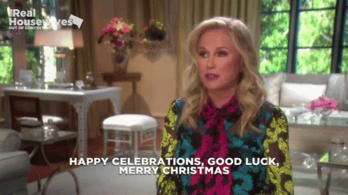 Kathy Hilton from Real Housewives of Beverly Hills shares a festive message: 'Happy Celebrations, Good Luck, Merry Christmas'.