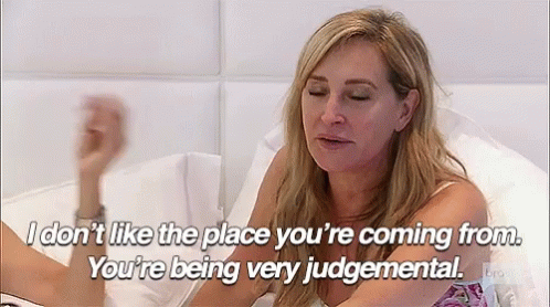 Sonja Morgan from Real Housewives of New York tells someone, 'I don't like the place you're coming from. You're being very judgemental.'
