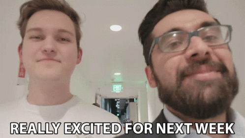 currylol and santorin smile, expressing excitement for the upcoming week in a FlyQuest vlog.