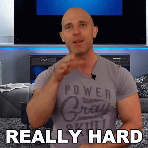 Simon Miller emphatically says 'REALLY HARD' while wearing a 'Power of Gray Skull' t-shirt.