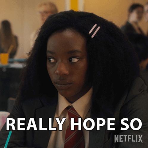 Corinna Brown as Tara Jones from Heartstopper, looking hopeful in her school uniform with the text 'Really Hope So'.