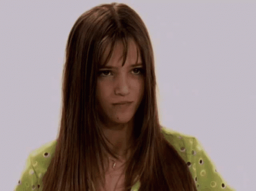Mia Colucci (Luisana Lopilato) from Rebeldeway makes a playful finger gun gesture with a pink light effect.
