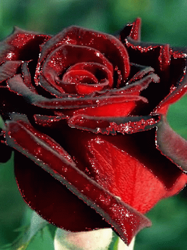 A close-up of a vibrant red rose with its petals unfurling, set against a dark, leafy background.