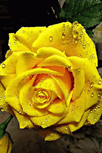 A beautiful yellow rose covered in glistening water droplets, showcasing its delicate petals in close-up.