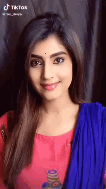 Keert performs an expressive dialogue for a social media reel, smiling and reacting in a pink top and blue shawl.