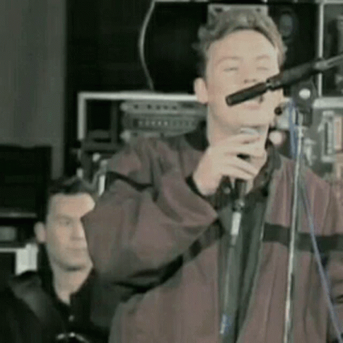 Ali Campbell, lead singer of UB40, passionately sings reggae music into a microphone on stage.