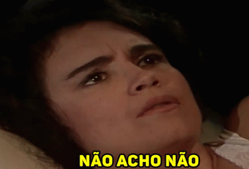Brazilian actress Regina Duarte in a close-up, expressing distress with the caption 'Não Acho Não'.