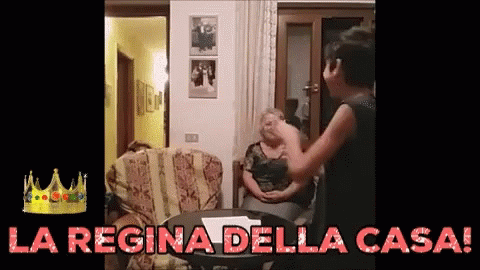 Nonna Antonietta is crowned 'The Queen of the House' by her family, celebrating with joy and laughter.
