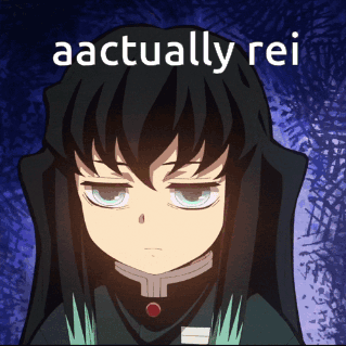 Muichiro Tokito from Demon Slayer looking unimpressed, with the caption 'aactually rei'.