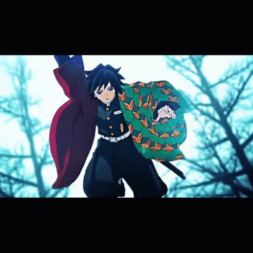 Giyu Tomioka, the Water Hashira, in a snowy forest, preparing for battle in this Reks Demon Slayer edit.