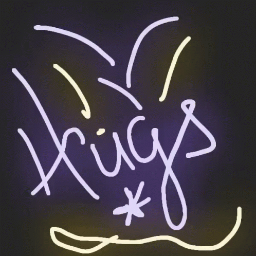 Animated glowing word 'Hugs' appears with sparkling effects, conveying warmth and affection for relationships.