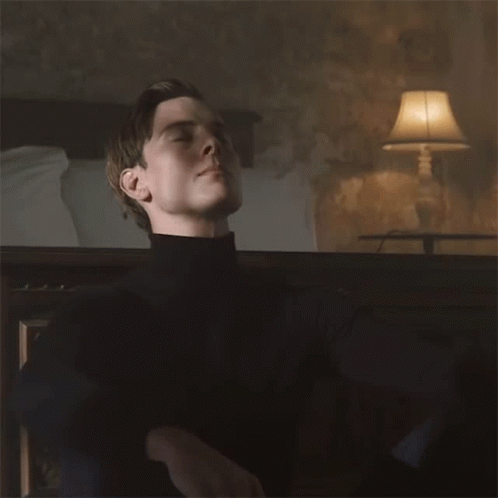 Man relaxing with eyes closed, possibly meditating, in a dimly lit room, evoking a calm atmosphere.
