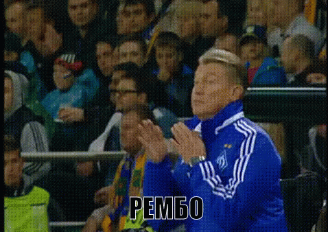 A coach, humorously labeled 'Rambo,' animatedly explains and gestures on the sidelines during a game.