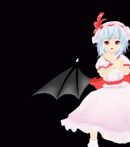 3D animated Remilia Scarlet from Touhou Project dances gracefully, showcasing her iconic bat wings.