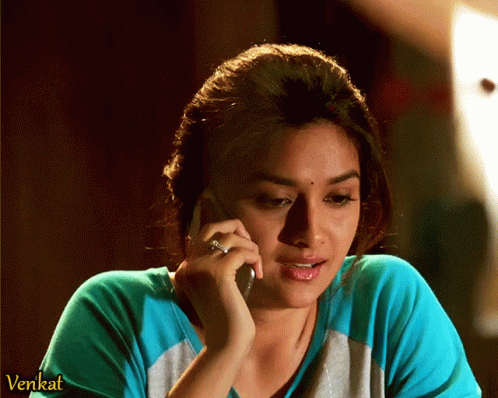 Keerthy Suresh on a phone call, from the movie Remo, also featuring Sivakarthikeyan.
