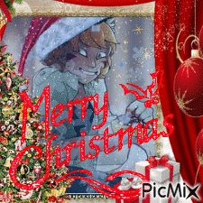 Ren Hana from Boyfriend to Death celebrates Christmas in a festive picture with a Santa hat.