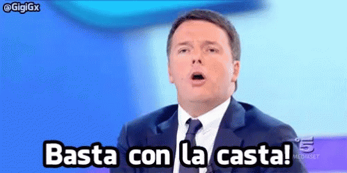 Matteo Renzi, former Italian PM, passionately declares 'Basta con la casta!' (Enough with the establishment!).