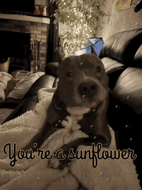 Vibrant sunflowers with a colorful abstract character and 'Good Morning Beautiful Day' text.