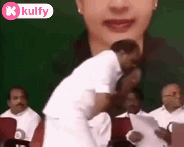 A man bows deeply in front of a woman at a political event, showcasing a gesture of profound respect.