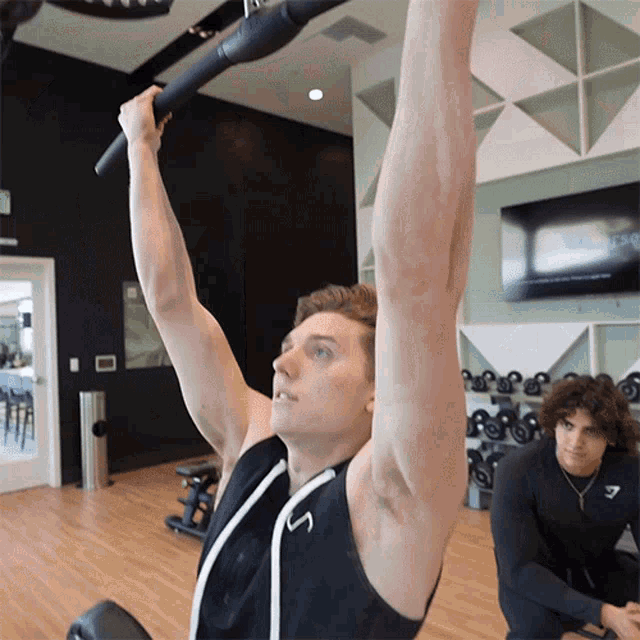 Brandon William performs reverse grip pulldowns at the gym, focusing on his back muscles.