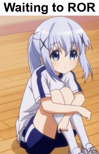 An adorable anime girl with light blue hair sits patiently, with the text "Waiting to ROR" displayed above her.