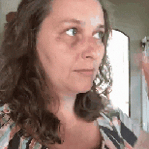Denise, with long brown hair and a mark on her forehead, appears to be praying or in deep contemplation.