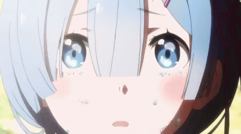 Rezero Rem crying with tears, then smiling happily, showing a range of emotions.