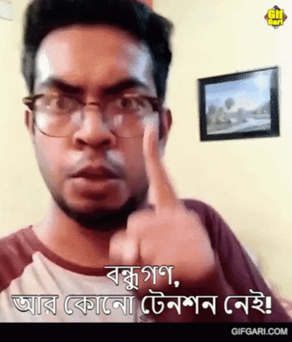 Rezoan Akil Akhtab Rezoan addresses friends, declaring 'No more tension!' with a pointed finger.