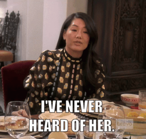 Crystal Minkoff from RHOBH delivers the iconic 'I've never heard of her' line, a classic meme.