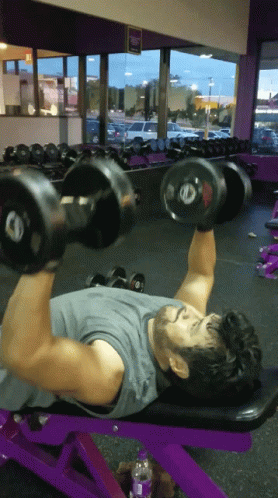 Rick Blanc performing dumbbell bench press at the gym.