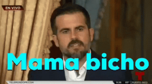 Ricky Rosello on a news broadcast with the phrase 'Mama bicho' displayed, related to 'Ricky Renuncia'.
