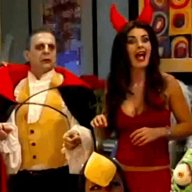 Gianni Sperti laughs heartily and exclaims 'Silvia!' with a wide smile.