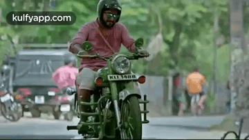 Vineeth Sreenivasan rides a Royal Enfield bike, performing a small jump on a street in India.