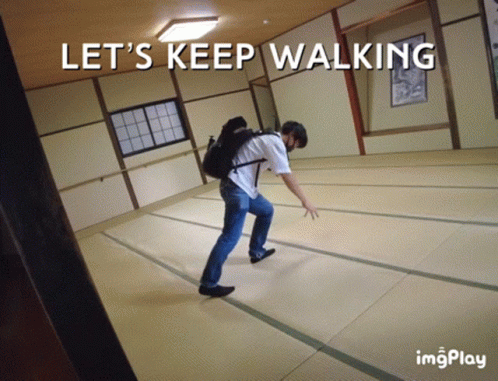 Rion Ishida navigating a tilted room, attempting to 'Keep Walking' with a backpack.