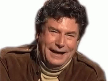 A man in a brown jacket and turtleneck is captured in a moment of intense, hearty laughter.