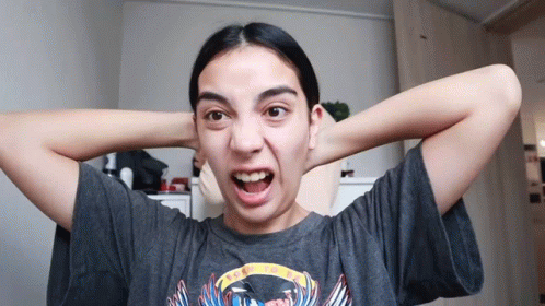 Claudipia reacts with a wide-eyed, surprised expression, then covers her mouth in laughter.