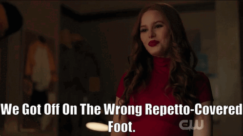 Cheryl Blossom (Madelaine Petsch) delivers her iconic 'wrong Repetto-covered foot' line in Riverdale.