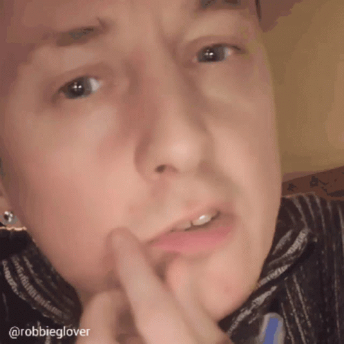 Robbie Glover points to his face, addressing acne and skin concerns in a close-up video.