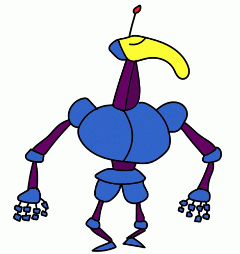 A cartoon drawing of the Robot Phew character, standing upright with a distinctive yellow beak.