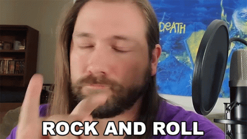 Michael Kupris makes a rock and roll hand gesture with 'ROCK AND ROLL' text overlay.