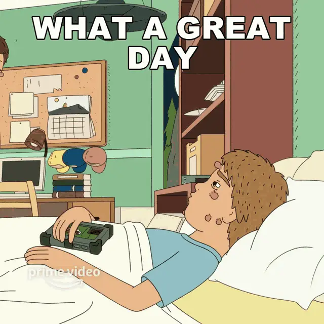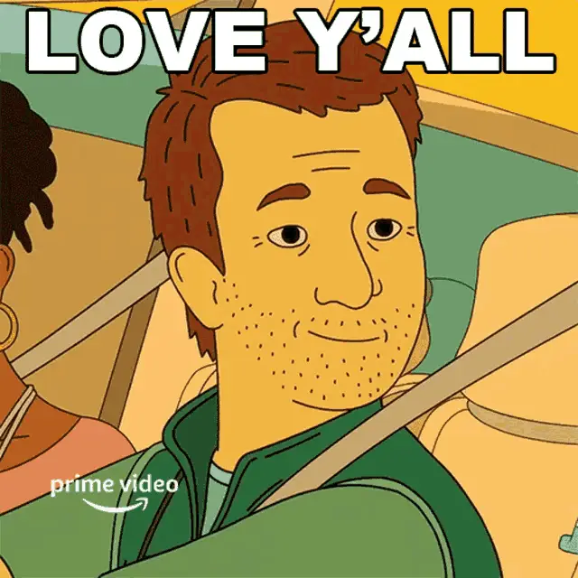 Truman from Rock On makes a hand gesture in this Prime Video cartoon, standing in front of a 'Gyros' sign.