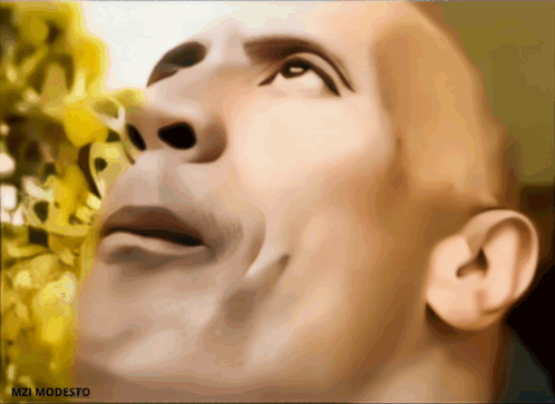 Dwayne 'The Rock' Johnson deepfake showing exaggerated mewing facial expressions, with 'MZI MODESTO' watermark.