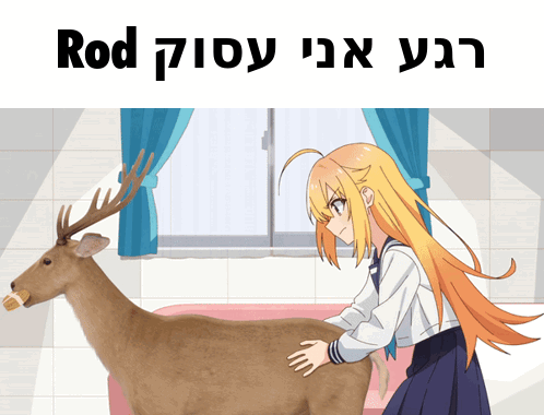a girl petting a deer in front of a window with the word rod above her