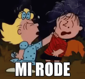 Peanuts characters in an angry scene, with the Italian phrase 'Mi Rode' (It gnaws at me) overlaid.