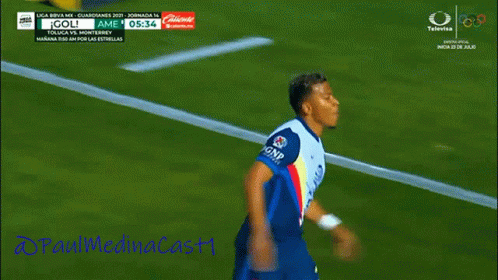 Roger Martinez celebrates a goal for Club America during a Liga MX match, with the score UANL 0-0 AME.