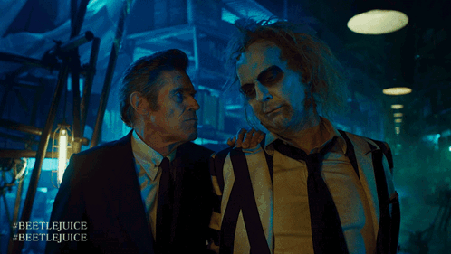 Michael Keaton as Beetlejuice with Willem Dafoe, featuring the 'Roger That!' caption.