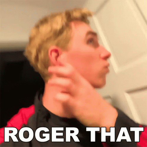 Stephen Sharer reacts with 'Roger That' while wearing AirPods, capturing a popular internet phrase.